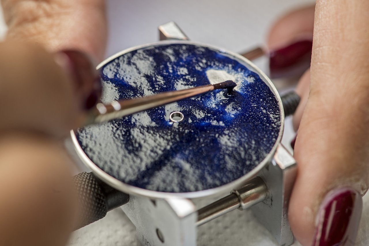 minuscule speck of light. Meanwhile the dial in the middle is paved with dazzling diamonds.