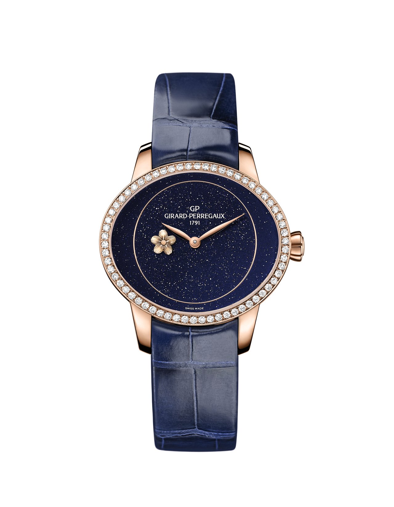 Reference: 80484D52A401-CK4E (pink gold, aventurine glass dial, blue strap)